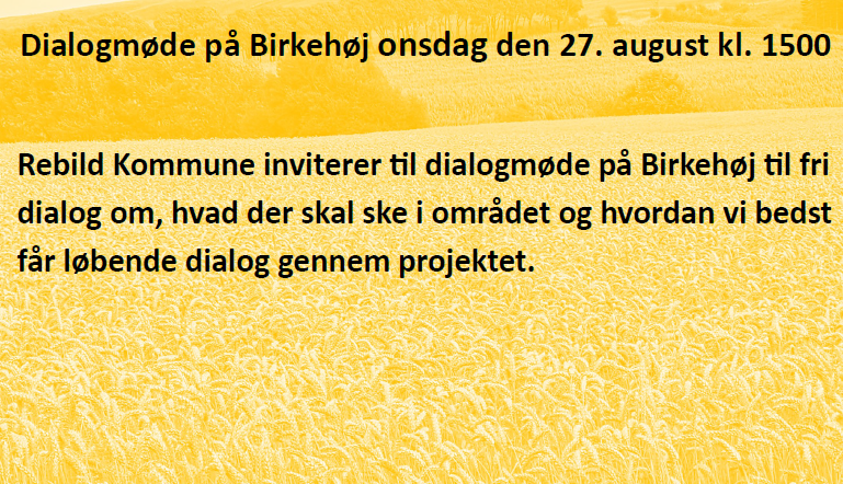 Rebild Kommune inviterer til dialogmøde på Birkehøj onsdags d. 27. august kl. 15.00 til dialog om, hvad der skal ske på området og hvordan vi bedst får løbende dialog gennem projektet.