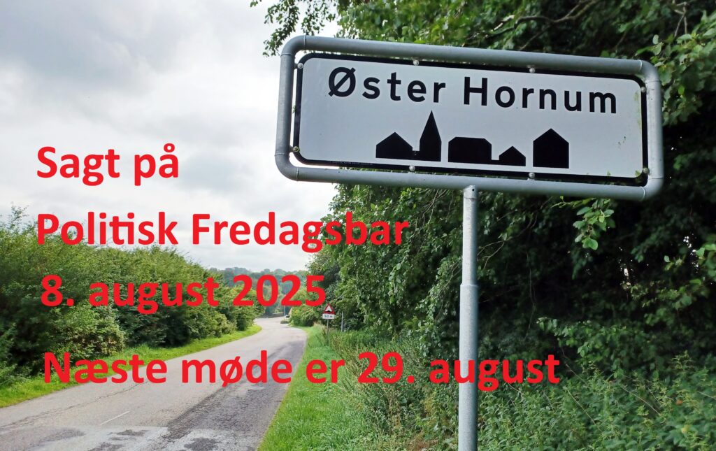 POLITISK FREDAGSBAR i ØSTER HORNUM HALLENS MØDELOKALE 29. AUGUST Read More »